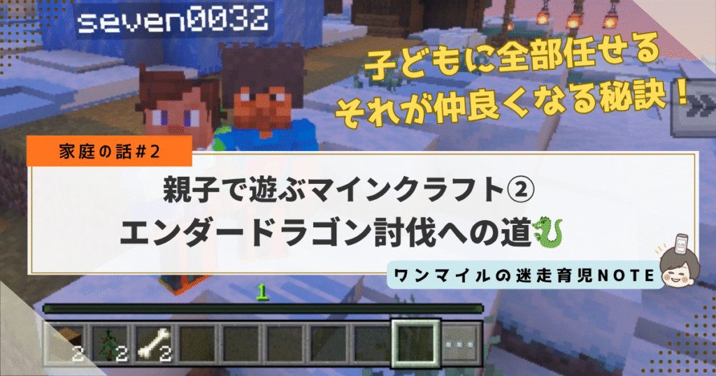 こんにちは!ワンマイルです😄 セブン(小4息子)とのマインクラフト、記念すべき第2回でございます。セブンはニンテンドースイッチ、僕はiPhone(12mini)でプレイしてい... 育児の知識